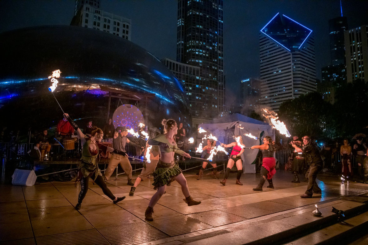 In 2019, the Chicago Full Moon Jam premiered The Moonlight Parade to an audience of hundreds in the heart of downtown Chicago. The performance was staged directly in front of Cloud Gate (aka the Bean) on Saturday, September 21 as a part of the Millennium Park Summer Theatre Residencies. The project was a grant recipient from DCASE and the City of Chicago in celebration of the 2019 Year of Chicago Theatre.